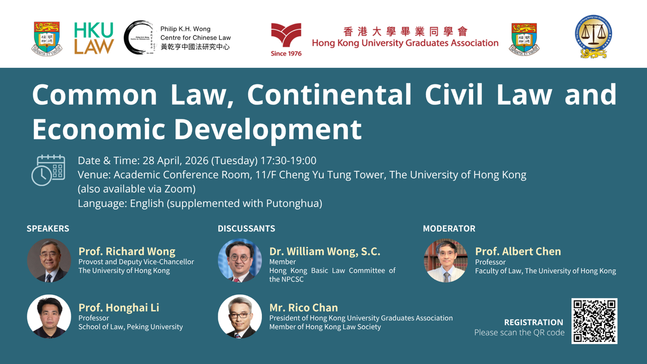 This cross-disciplinary, comparative and practice-sharing law seminar aims to examine how and to what extent Hong Kong’s common law system under our “One Country Two Systems” contributes to the successful economic development of Hong Kong SAR, the Chinese Mainland and regional and global trade and investments.